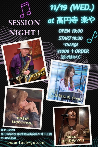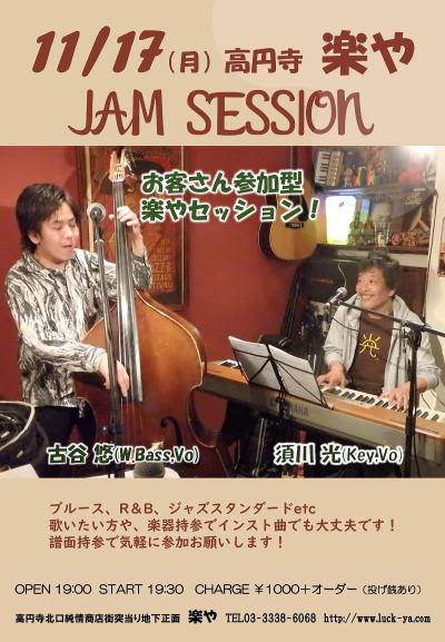 ♪お客さん参加OK!ブルース、R&B、ジャズスタンダードetc(譜面持参して下さい)