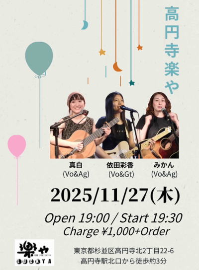 真白(Vo,Ag) / 依田彩香(Vo,G) / みかん(Vo,Ag)