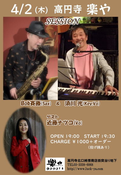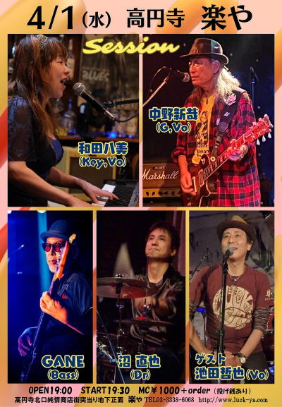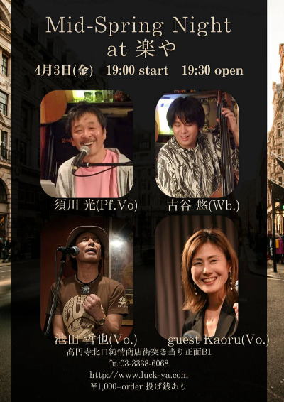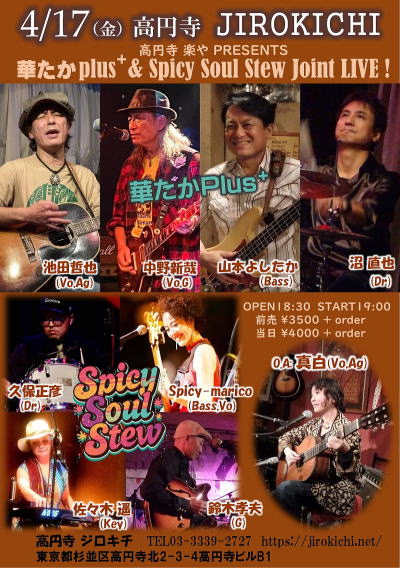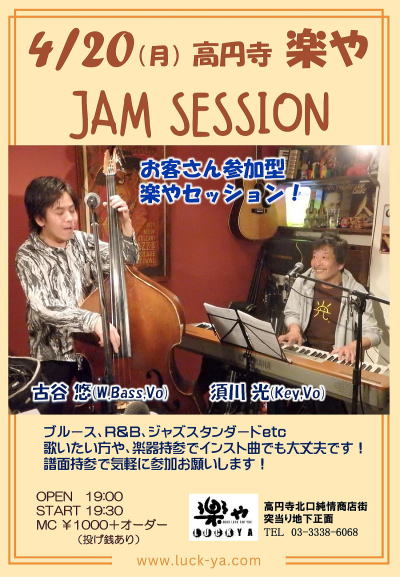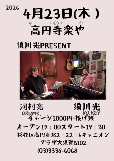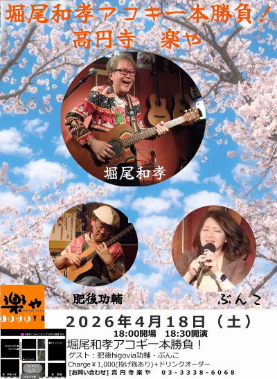 4月17日(金) は高円寺JIROKICHI にて、楽やPRESENTSのイベントライブをやります。