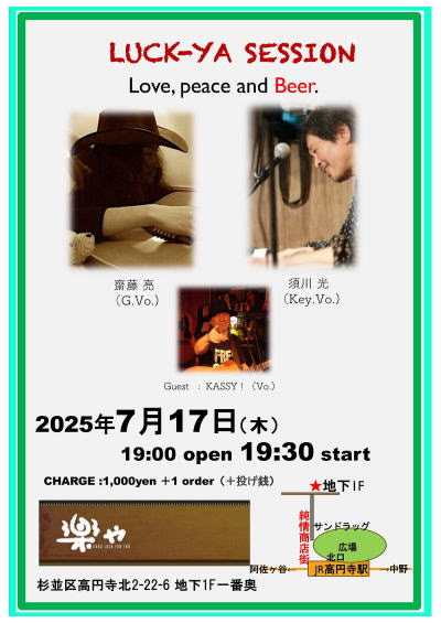 7/6(日) ★NO CHARGE!★ 【17:00オープン 17:30スタート】