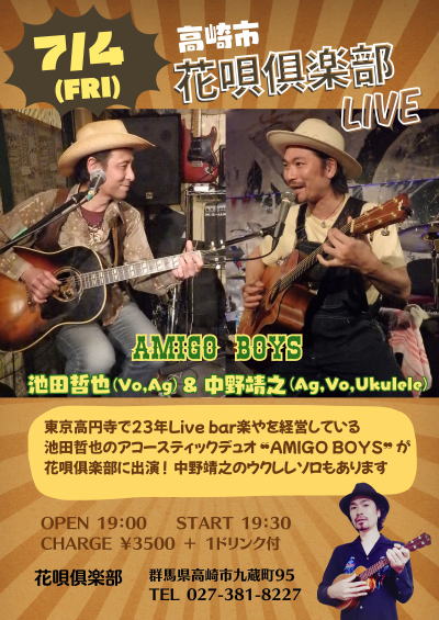 AMIGO BOYS 池田哲也(Vo,Ag)&中野靖之(Ag,Vo,Ukulele)
